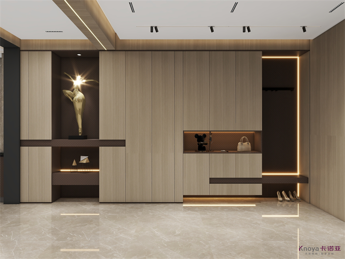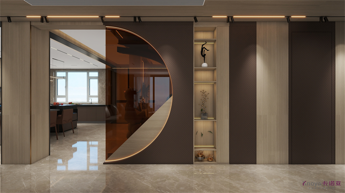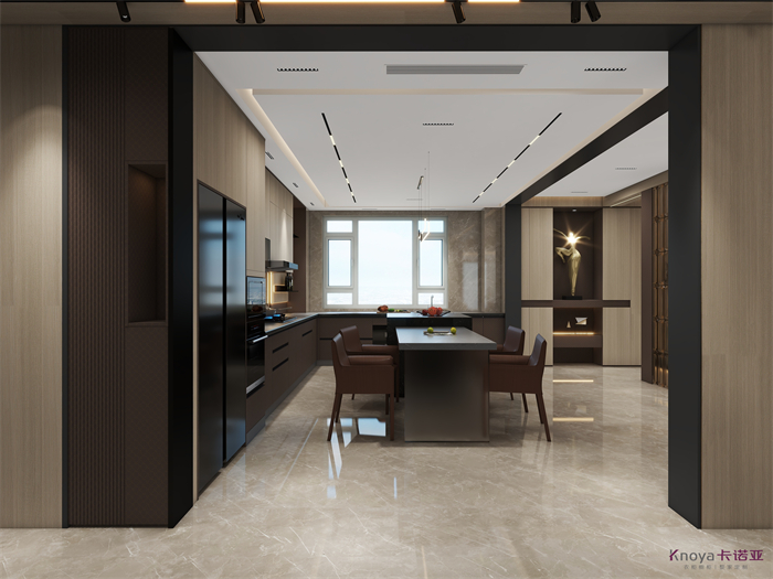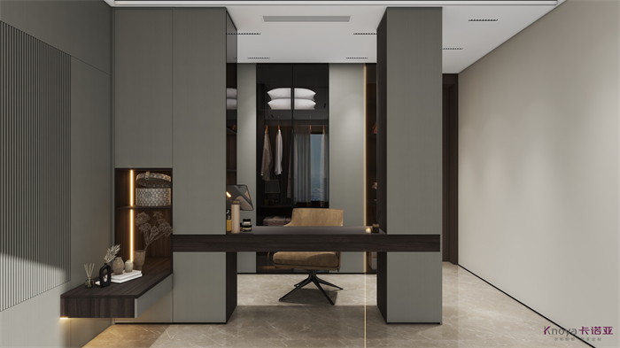 意式极简既具有意大利文艺复兴时期的意蕴,奢华高贵,同时又兼具现代感的干练高级,深棕色的木饰面搭配原木色穿插营造的高级感贯穿整个空间,利用材质的对比与反差加强空间的质感感受。优雅与深邃的配色让空间散发出静谧感,简约的线条在诉说永恒的经典,脱离一切的浮华与烦躁。身居清雅地,心无车马喧,从生活的本质出发,让它静下来,感受快节奏都市生活背后的安静与宁静。